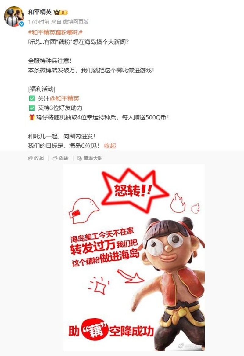 和平精英官方微博于近日发布了一则趣味联动活动,引发了玩家的广泛关注。活动内容显示,只要该条微博的转发量突破1万,游戏内就将上线趣味哪吒角色。