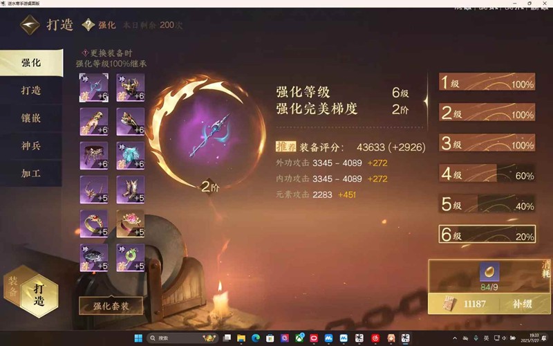 鞋子:使用乌炎淬金(日课,侠棋,打造积分获取)打造,三次必出一个金只要出了任意一个金打造都可以用