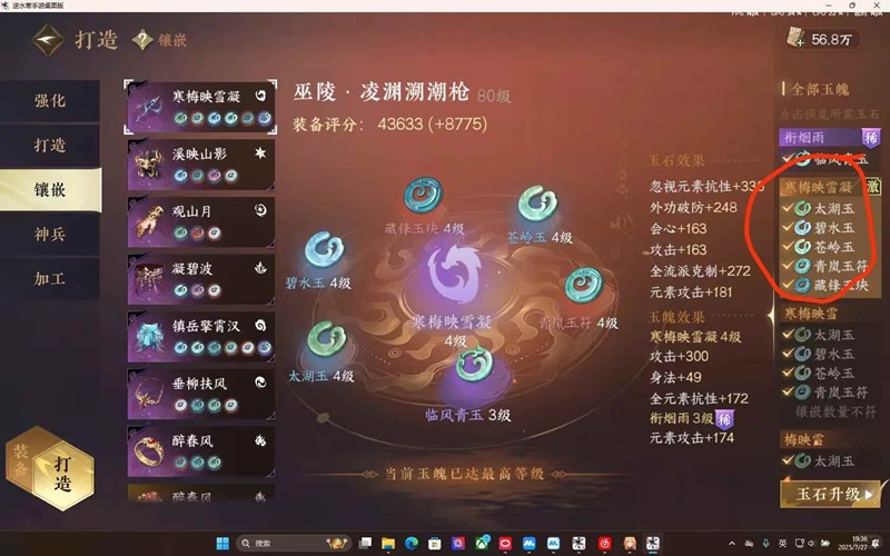 镶嵌栏:优先凑齐红圈所示的套装效果,优先武器,项链,两个戒指。