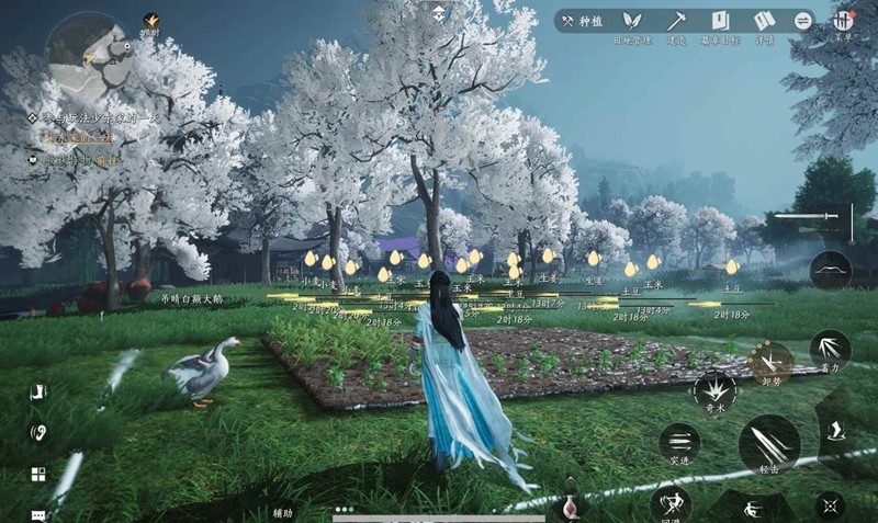 建造模式摆放一块土地,然后开垦播种浇水施肥,等植物成熟后收割(现实时间),种子肥料可以在家园商店中购买