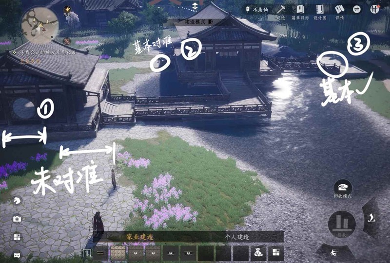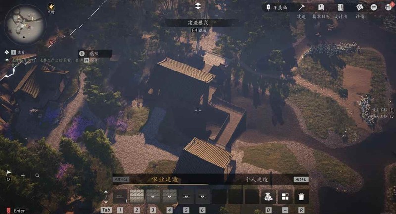 好了,现在你有一个待填充的蓝图了,这边建议你攒好材料以后一键落成,但是如果你喜欢自己慢慢来的成就感,也可以靠近蓝图打开建造模式,战斗普攻键会变成填充键,你可以自己慢慢填进去,想放弃也可以随时点图纸一键落成。
