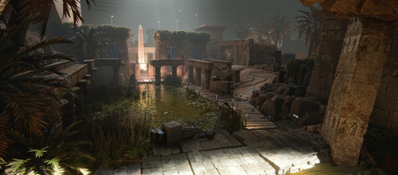 金字塔地图位于一片广袤的沙漠绿洲之中,四周环绕着尼罗河支流和古老的断壁残垣。进入金字塔内部后,玩家会发现这里被改造成了现代化的军事基地,实验室和训练场等设施一应俱全。这种古今交融的设计为萤火突击的战场增添了独特的氛围。