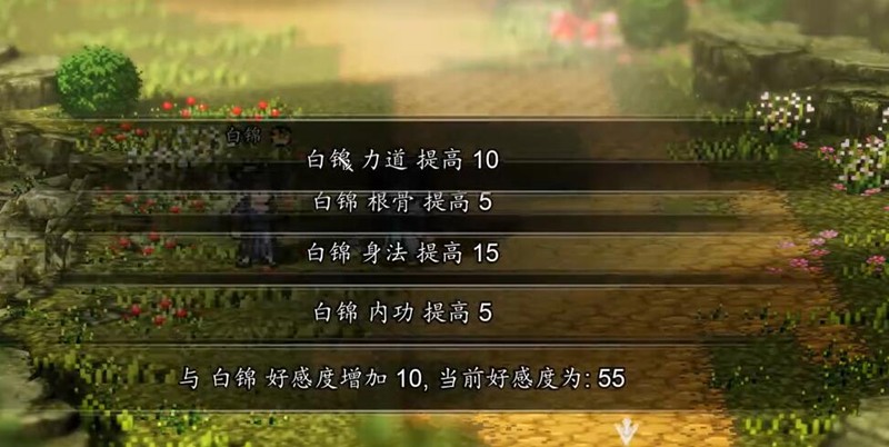 白锦的好感度主要通过两种途径提升。首先是推进他的专属支线剧情,在剧情发展中会自然获得好感度加成。其次是赠送他喜爱的礼物,包括药食、字画和秘宝三类物品,这些都能有效提升好感数值。