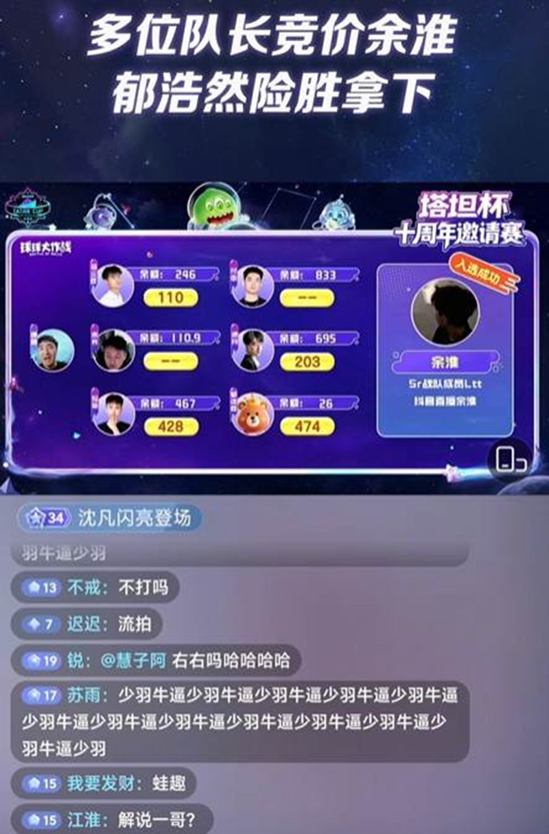 选人仪式中,队长们根据选手的表现实时押注组队,现场气氛紧张激烈。例如,马三叹豪掷塔坦币抢下两名选手,成为出手最大方的队长。