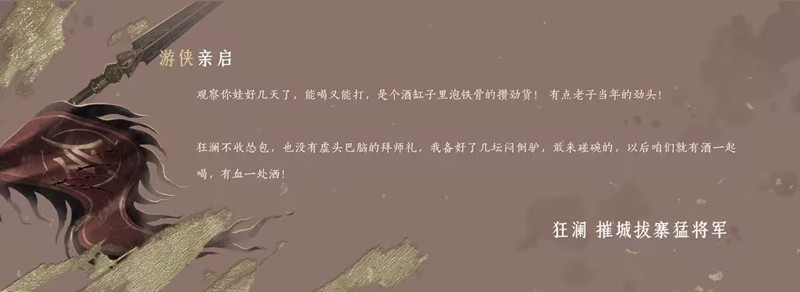 江湖虽大,知音难觅。若君亦是性情中人,嗜酒如命,狂放不羁,何不入我狂澜?众人同心,当浮一大白!山门已开,好酒已备,只待游侠凭帖入门。醉里挑灯看剑,醒时纵马江湖,快意恩仇,方不负此生!