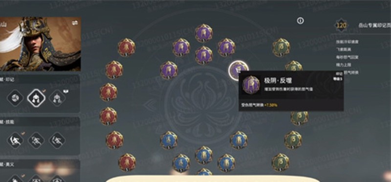 岳山的天赋配置主要围绕精力管理和怒气获取展开。红色和绿色印记建议全部选择精力印记,这样可以保证岳山在战斗中拥有充足的闪避和追击能力。紫色印记推荐三个精力印记搭配三个伤害怒气转换印记,既能保证机动性又能加快大招充能。蓝色印记则建议全部选择飞索距离加成,提升岳山的追击和逃生能力。