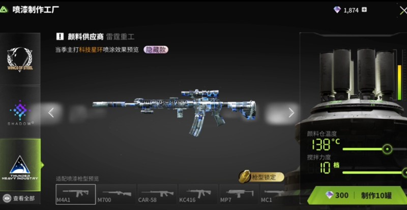 当碎片数量足够时,就可以在改装功能中为枪械进行喷漆改造。改造过程中,仓库温度和搅拌力度是关键因素,直接影响喷漆的成功率。