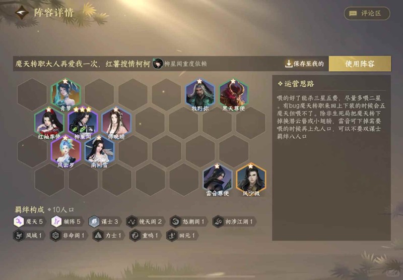 中期5战士发力,后期面对其他大成阵容乏力,需要d出三星四费或三星五费才能稳吃鸡。并且同行过多且顾惜朝各阵营需求量大会被卡牌。(小技巧,做三星四费顾惜朝如果被卡牌可以做三星季寒修,也是很强的三星四费)