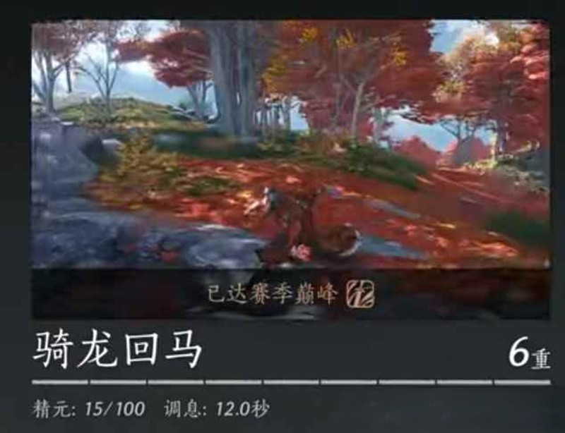 箫吟千浪(起手增伤)→ 武学技一段(滑铲,无敌帧规避伤害)→ 特殊技 “飞红踏雪(挂胆寒 Debuff)→ 武学技二段→ 轻击蓄力→ 派生技→ 拔雪寻春(反击触发)→ 骑龙回马(爆发收尾)→ 重复循环。