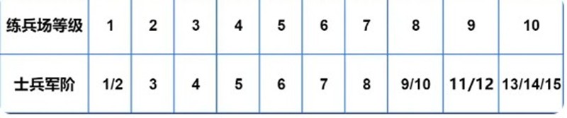 每个兵种都有15级军阶,提升军阶能增强基础属性和战力。需要注意的是,军阶上限受练兵场等级限制。军团人口数量决定了可上阵的士兵数量,需要通过个人科技来提升。当练兵场达到7级后,还能使用慧晶等资源提升全体士兵的基础属性。