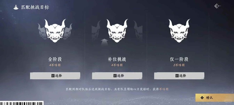 点匹配的时候先跳选择,因为一个本里面不止一个关卡,全阶段就是两关都打,补位可能就是有的队伍出现了少人的情况,补位进去可能跳过第一关只打第二关,仅一阶段就是第二关不打,我全选是因为之前看攻略有老师说不用管直接全选就好,然后就是我发现全选匹配会更快一点(不知道是不是错觉)