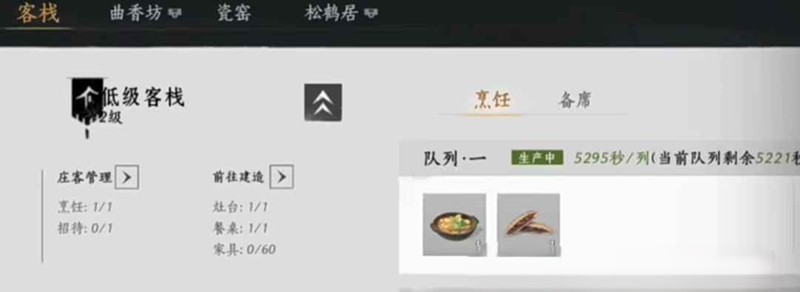后期材料多以后,备菜就可以选择今日热卖的菜品,如果材料不够就选择材料多的高级菜制作(推荐红烧麋肉),注意!一次只做一份菜,不要多做,不要下线,会重新计时(目前不知道是bug还是设定)