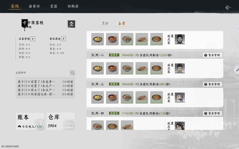 一些人的烹饪和备席的生产时间,是存在bug的,你下线之后再次上线时间会重置。土特产和种田生产时间是正常运营的,曲香坊、瓷窑未测试不太清楚