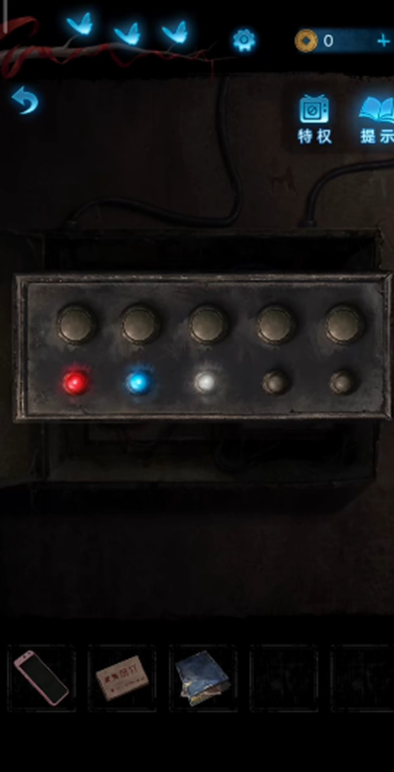 无间梦境第二章会出现两个带有按钮的电闸盒子。第一个电闸盒子需要玩家观察周围闪烁的光点,这些光点会以特定顺序显示不同颜色。盒子上的五个按钮从左到右分别对应红、蓝、白、黑、红四种颜色,玩家需要按照光点闪烁的顺序依次调整按钮颜色,完成后即可打开盒子推上电闸。