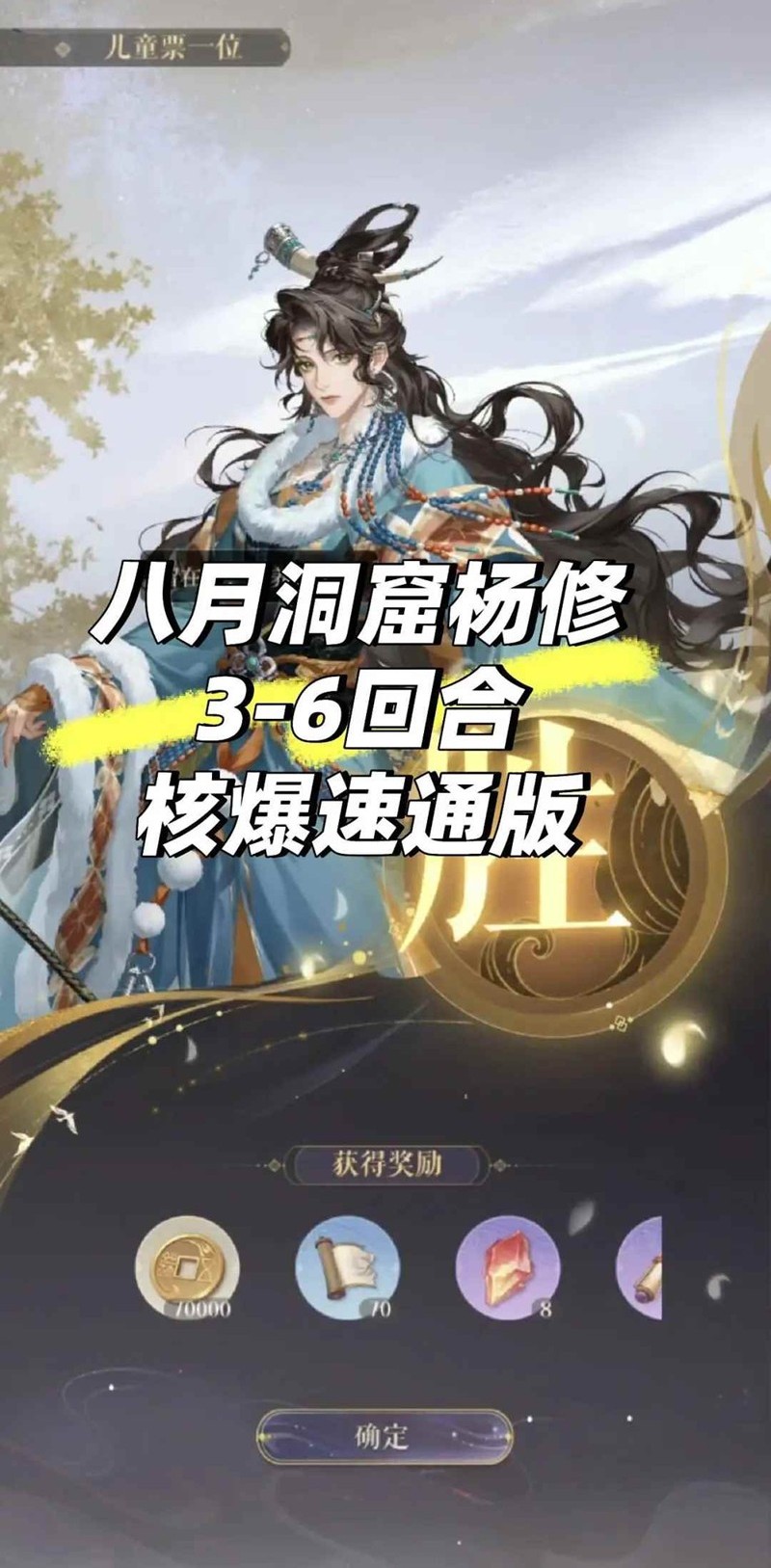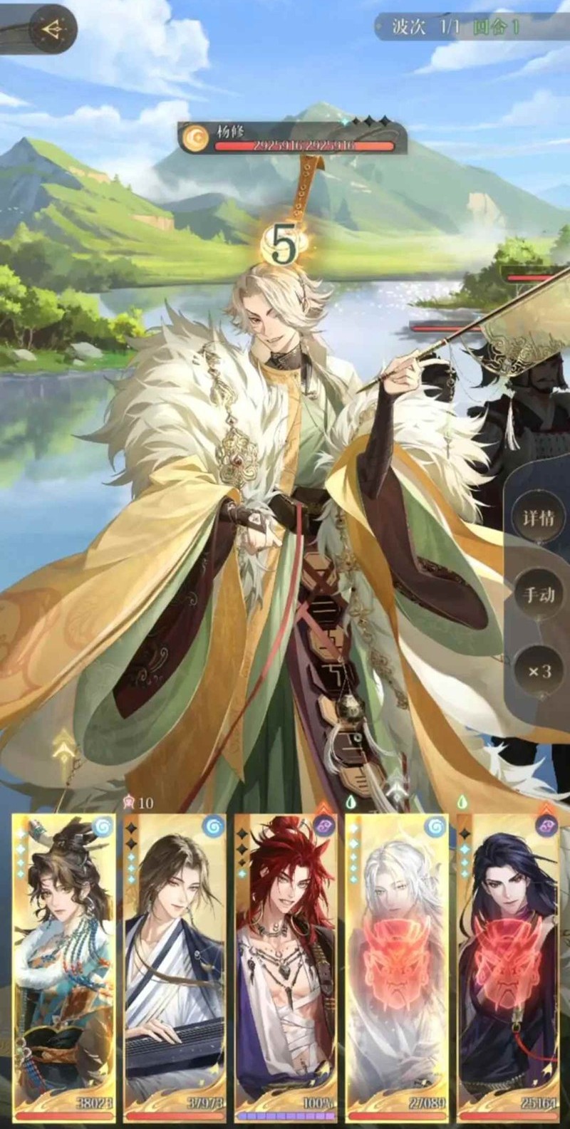 三回合攻击后全员要存活,杨修会被令狐茂反伤打死。伤害不够,哥的二轮大还可以补伤害。只要杨修死在第四回合就行。我的伤害是第一轮大就够的。