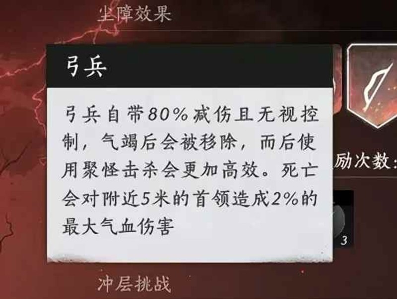 弓兵出来之后卸势,卸掉之后把弓兵太极扔到boss附近打死,boss身边5米内会给boss造成2%气血伤害。一共三个弓兵就是6%。