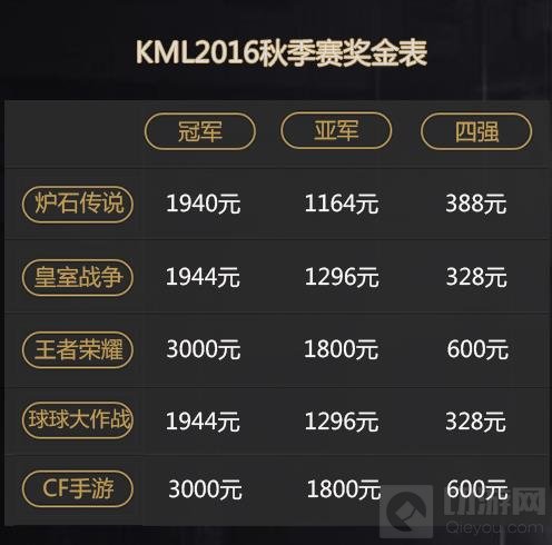 KML2016秋季赛正式比赛项目奖金设置(单位:人民币)