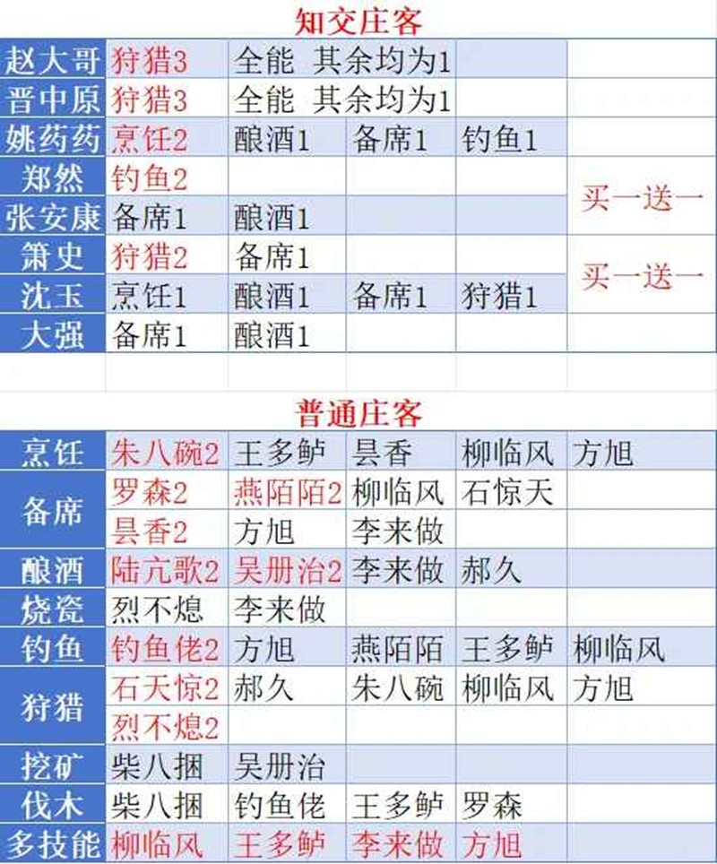 知交招募需要概率,目前我感觉每周第一个固定能招到,第二个在少东家的一天里面要看运气刷新任务。每位庄客各有利弊,具体可以看图。
