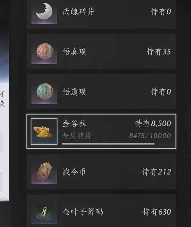 注意:金谷粒获取存在每周上限一万!(因为是任务所得,存在上限感觉非常不合理,希望后续策划能优化一下!)