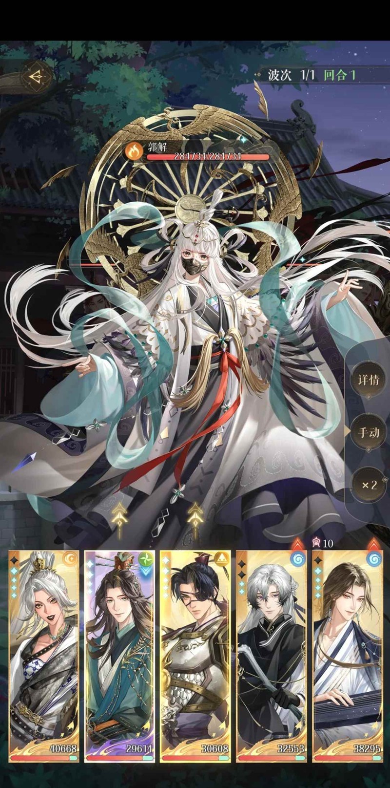 3、攻击敌方顺序:开局先打【孙尚香】,死了以后然后全员开始打【张郃】,等【张郃】死后全员开始攻击【孙权】,最后打【郭解】