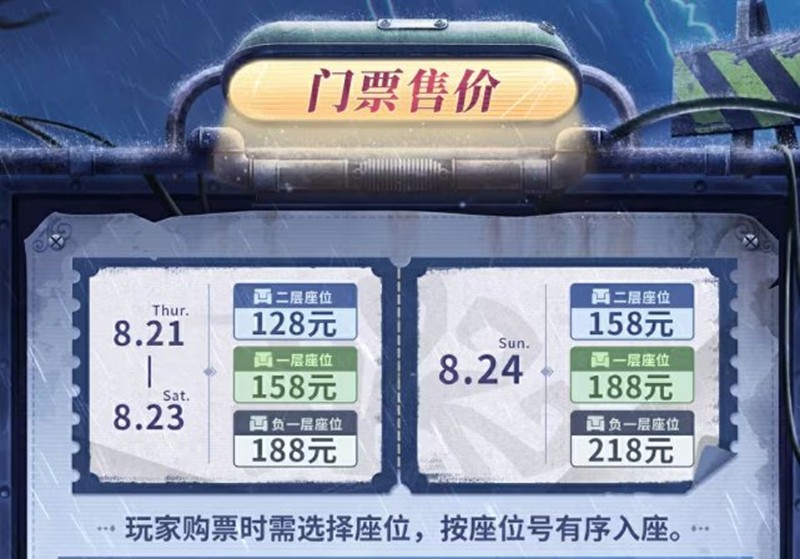 玩家购票时需选择座位,按座位号有序入座。座位分布图已在购票指南中提供,玩家可以根据自己的喜好选择不同区域的座位。
