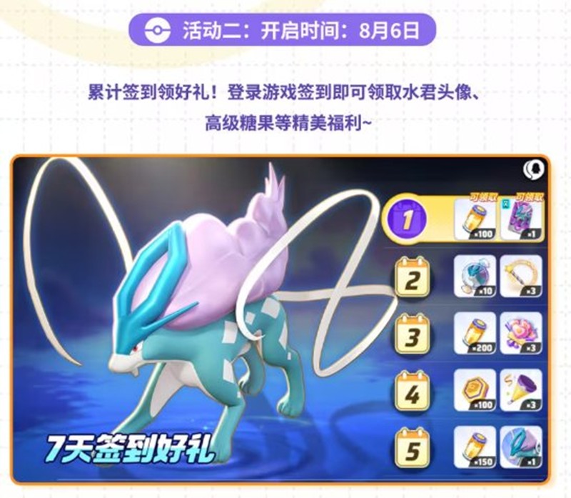 累计签到好礼:8月6日启动,玩家登录游戏签到即可领取水君头像、高级糖果等奖励。