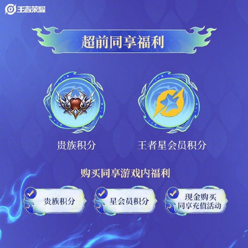 购买超前皮肤的同时,玩家还可以享受游戏内的贵族积分和王者星会员积分。这些积分可以用来参与现金购买同享充值活动,为玩家带来更多的游戏内福利。