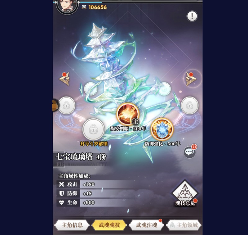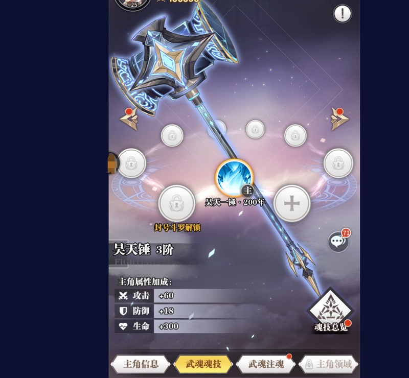 需要注意的是,武魂一旦解锁就会自动装备到主角身上,无法进行手动更换或卸下。玩家只能通过培养来提升武魂的等级和技能效果。比如昊天锤主要提升攻击力和生命值,而七宝琉璃塔则侧重辅助能力。