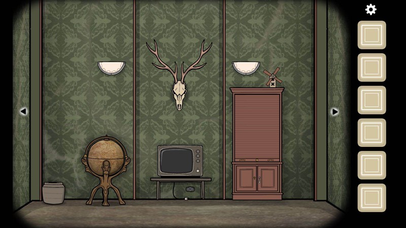 首先要理解房间的布局结构,整个场景实际上是一个四面墙的房间。根据大柜子里的书籍提示,鹿头的位置代表12点钟方向,窗户则是6点钟方向。
