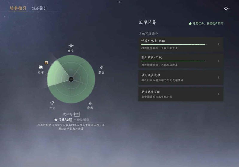 武学先升到95级(武学天赋值尽量叠满有效词条! )