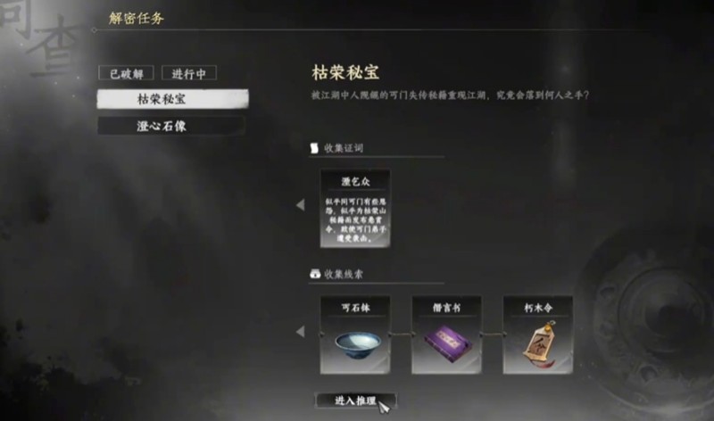 获取枯荣秘宝需要收集三把特殊钥匙。执明钥匙需要先找到空虚子对话,然后前往指定地点搜寻获得。梦章钥匙的获取更为复杂,要先击败特定区域的流氓,与谭彦杉对话后清理小怪获取账本,最后与余梦蕊交流才能拿到。监兵钥匙则要通过完成NPC委托任务,击败特定敌人后使用秋梦道具开启宝箱获得。