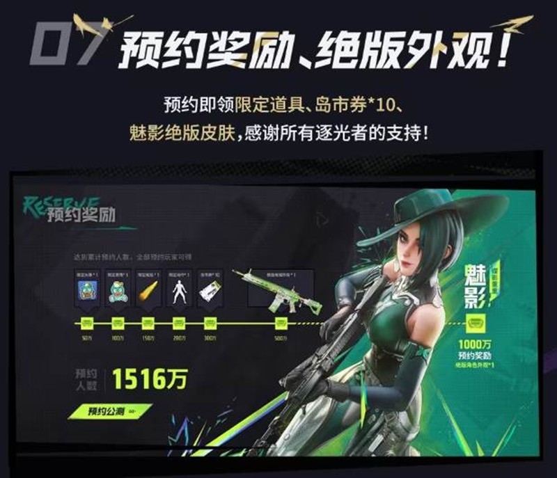 预约即领限定道具、岛市券*10、魅影绝版皮肤,感谢所有逐光者的支持!