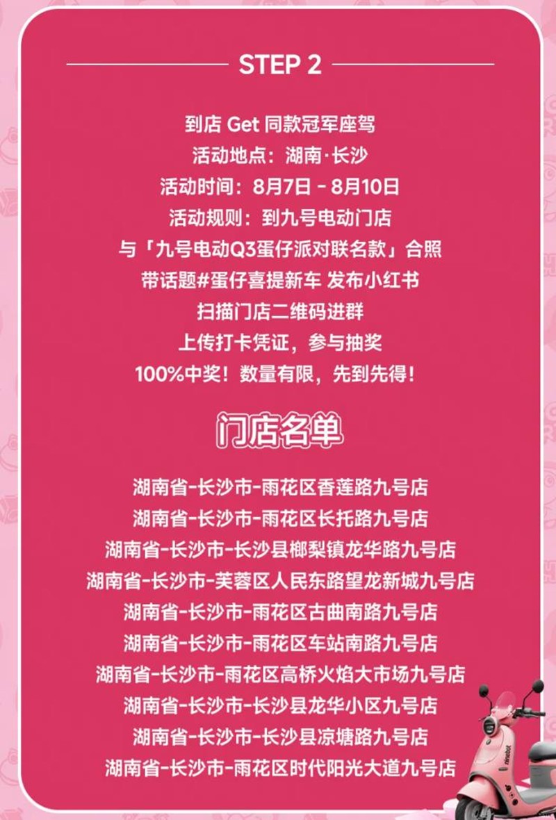 此外,九号公司还将在现场设置九号电动Q3系列联名款的展示区,供观众近距离欣赏和体验。现场还将举办九号电动Q3系列联名款的抽奖活动,幸运观众将有机会获得九号电动Q3系列联名款电动车!