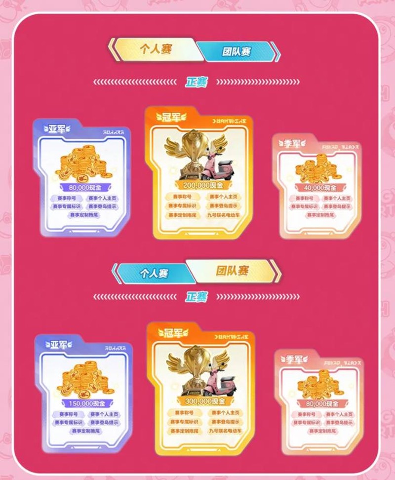 为了进一步提升赛事的影响力和选手的荣誉感,九号公司作为本次赛事的重磅合作伙伴,为每位冠军选手额外提供了一辆九号电动《蛋仔派对》Q3系列联名款电动车,作为特别奖励。