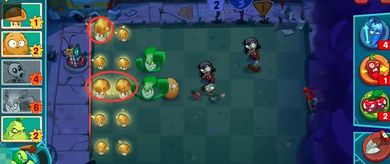 阳光菇的成长速度受环境影响。在白天关卡中,阳光菇会进入"睡眠"状态,需使用咖啡豆唤醒才能正常生产。但在夜间关卡,阳光菇无需额外唤醒,可稳定提供阳光,是更优选择。阳光菇的耐久度较低,容易被僵尸破坏,建议搭配坚果墙或高坚果保护,避免被快速突破防线。