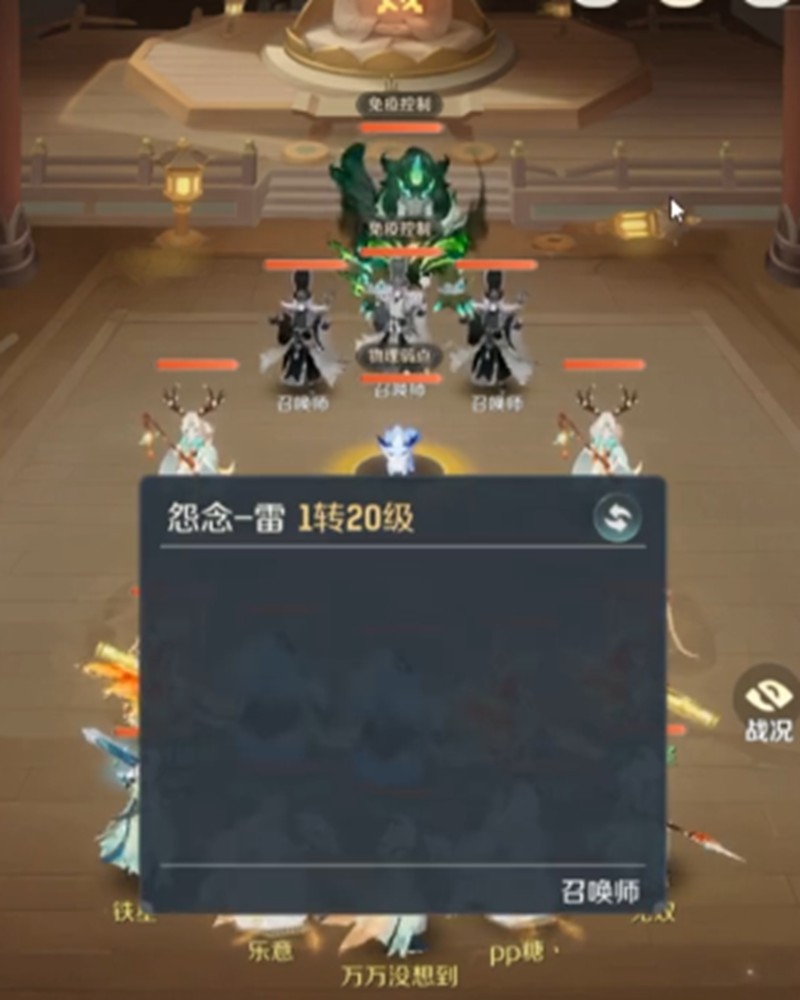 奶妈单位要注意速度问题,速度较慢的奶妈无法及时拉起快速倒下的召唤师。法系群伤在这个关卡非常重要,一个回合的控制失误可能就需要用群秒来补救。当三个召唤师都被击倒后,场上会剩下两个尾速法系和两个尾速单位,这时就可以集中火力清理两侧的路人单位。