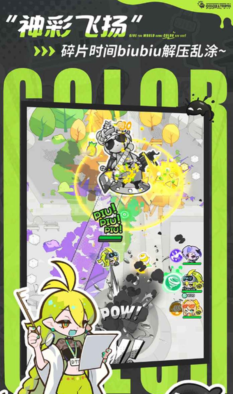 通过染色可以积累对应颜色的能量,能量满格后就能释放强力的必杀技,不仅能造成大量伤害,还能进行大面积的染色。游戏中有多个风格迥异的角色可供选择,每个角色都有独特的代表颜色和专属技能。