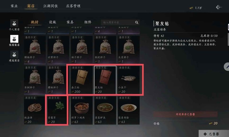 仓库优先存入青礞石(5级瓷器所需),其他矿石原料随意。5级两种鱼、5级肉也可以存点