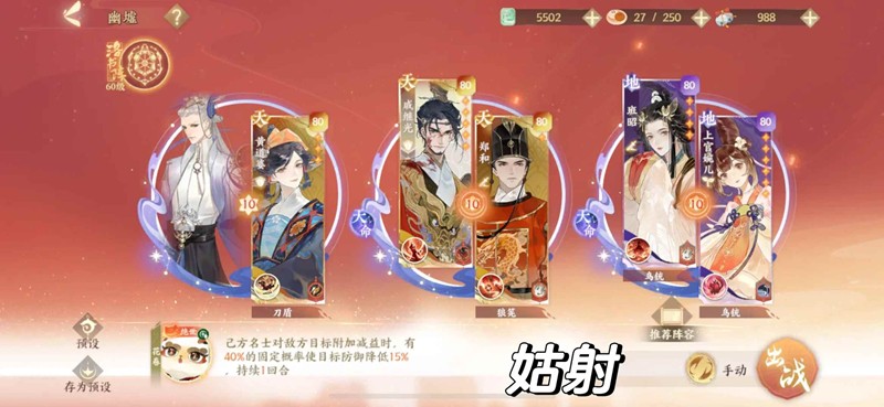 之前自动就能过,这周莫名其妙一个aoe带走三个名士,老老实实手动过的,不知道原因。承佑这回先打的春华。