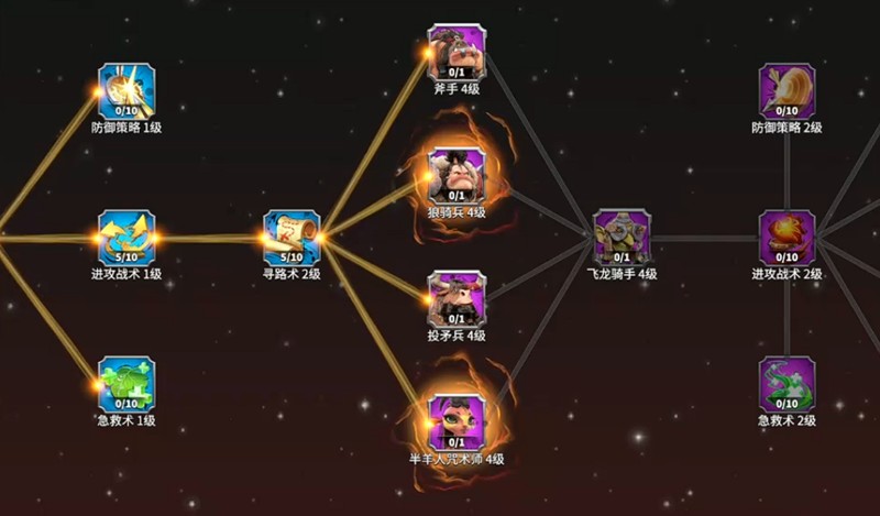 兽人族的飞行部队在移动速度上略显不足,但凭借超高的血量和防御力成为战场上的坚实肉盾。这类兵种同样只能进行近战攻击,建议在天赋加点时优先提升骑兵系技能,打造飞行兵与地面骑兵协同作战的强力阵容。