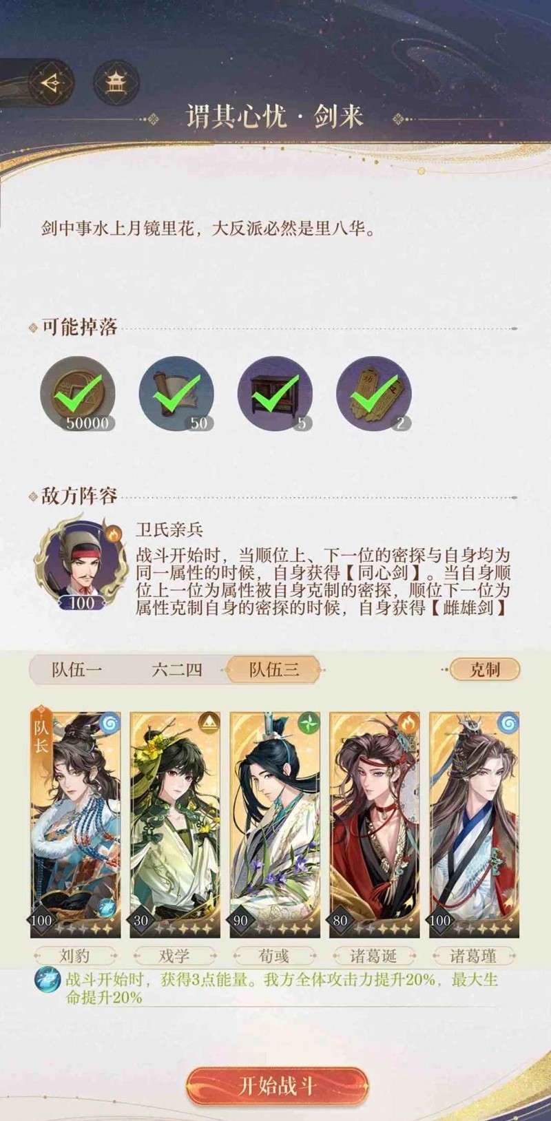 图中的诸葛瑾和诸葛诞是三星,但是你们别害怕!!裸星石的,攻击才七千,放手一搏,相信我这关很简单。