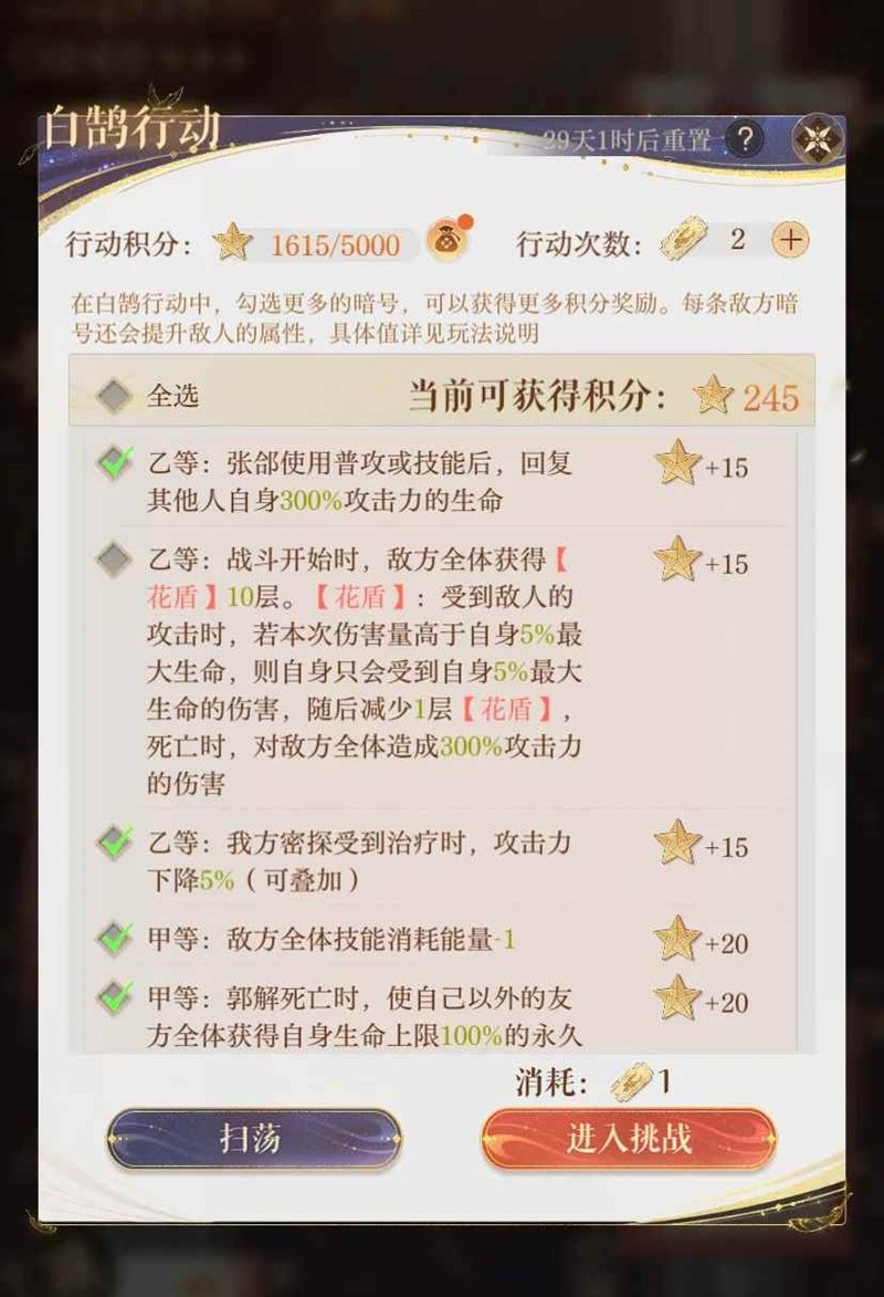以上就是如鸢白鹄行动8月,220及245星豹良茂瑜粲攻略的全部内容了,更多游戏资讯,攻略内容敬请关注切游网,您的支持是我们努力的动力!