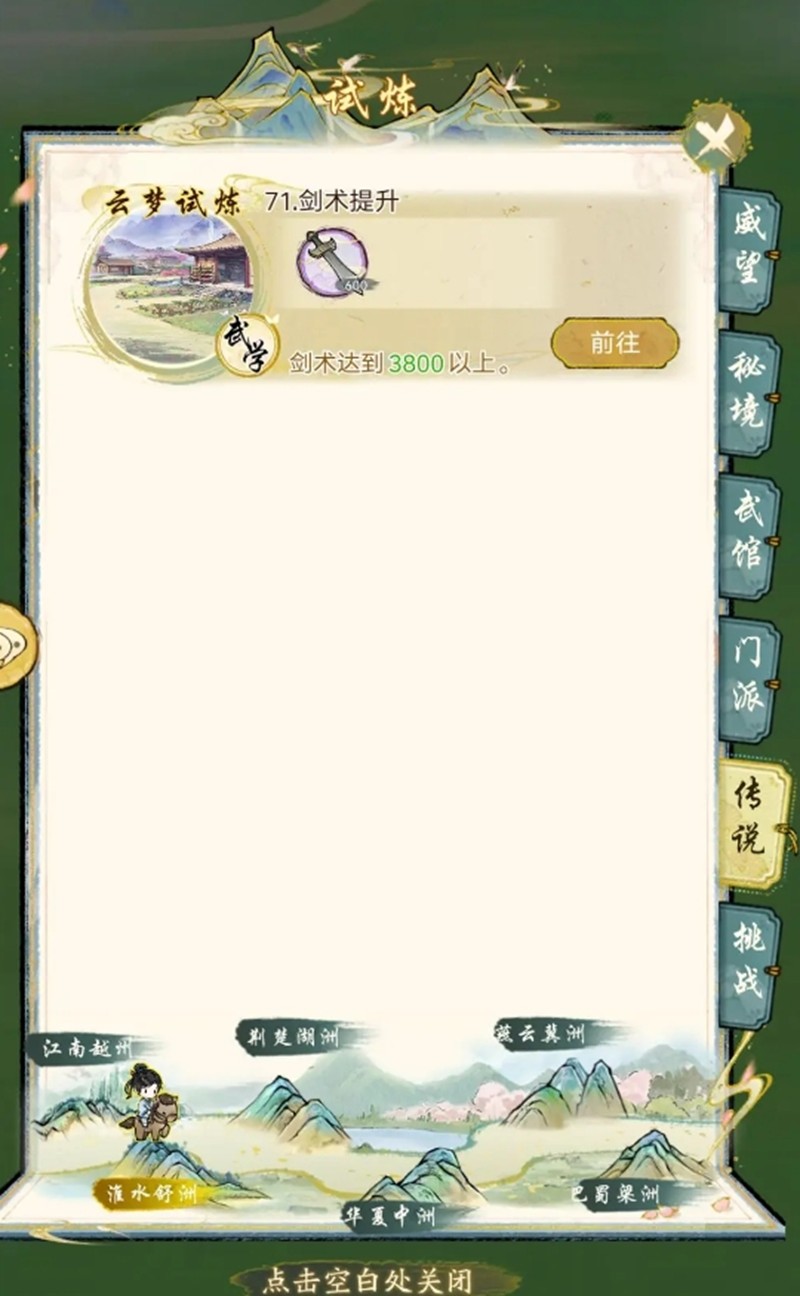 试炼挑战包括龙女试炼和云梦试炼两个高难度玩法。通过特定层数后,玩家可以获得整套红色功法奖励。需要注意的是,部分关卡需要满足特定条件才能解锁,比如剑术等级要求等。