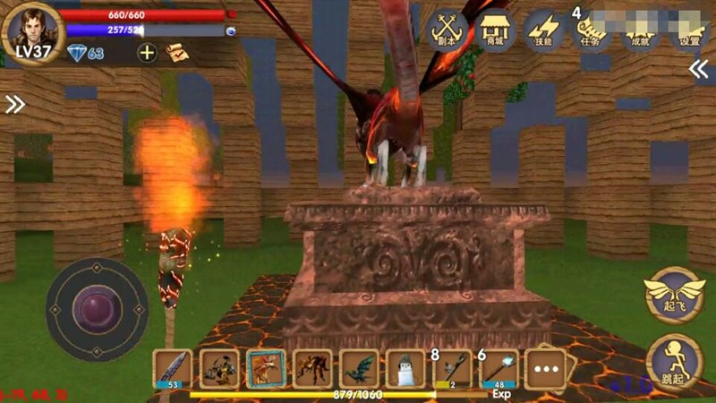熔岩龙出现后会被困在建造的空间内。战斗时建议召唤其他宠物协助,让它们承担主要伤害。