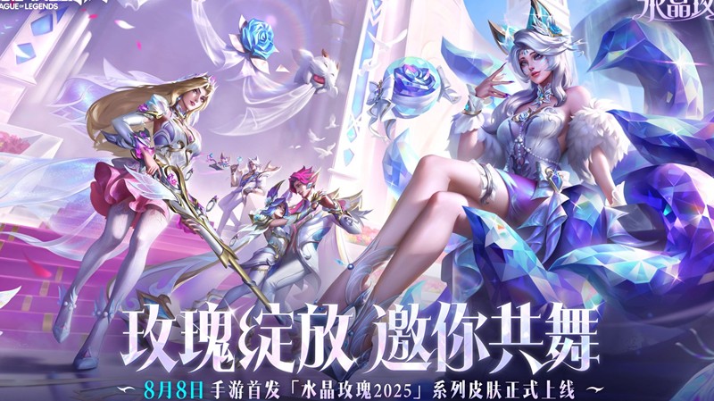 水晶玫瑰系列皮肤将于8月8日闪耀登场,召唤师们可前往游戏内参与活动获取皮肤,感受浪漫与优雅的完美结合。