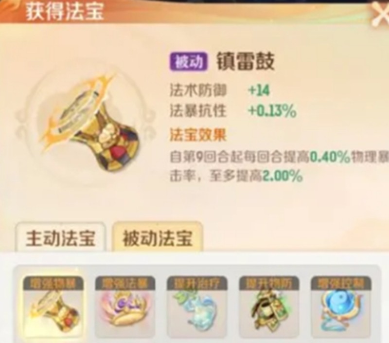物理攻击型职业推荐选择七星剑作为核心法宝,这件装备能够大幅提升角色的伤害输出能力。风火轮和震雷鼓也是不错的选择,震雷鼓在第9回合后能提高物理暴击率,而风火轮则能增加出手速度,让角色在战斗中占据先机。