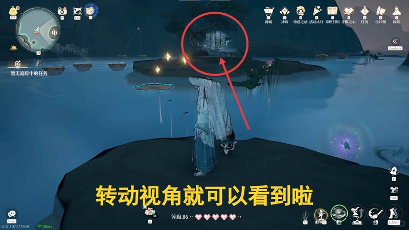 传送 奇境画轴·丹青之境湖心岛 锚点,转动视角,就可以看到啦╰(*°▽°*)╯