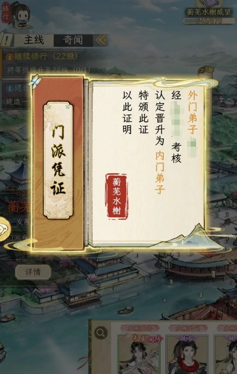 加入蘅芜水榭后,玩家会先成为外门弟子。想要晋升为内门弟子需要完成一系列任务。首先要通过完成门派日常任务来提升威望值,同时需要与特定NPC培养亲密度。当亲密度达到"随性"等级后,就可以找花铃儿进行晋升挑战。建议准备一些具有禁疗效果的武学招式,这对挑战很有帮助。