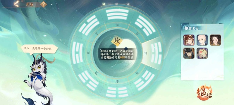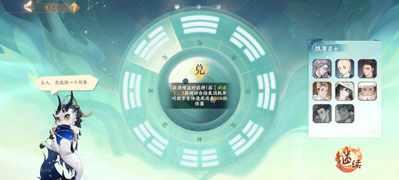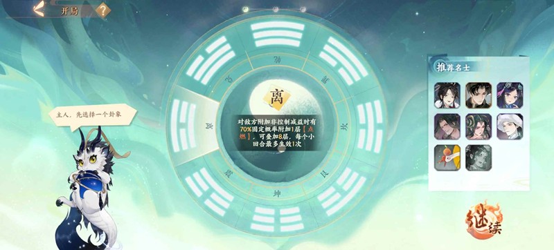 开局:有八卦四象可选。这里笔者推荐走毒队,选离卦,白虎,招募班昭和吕雉开局。