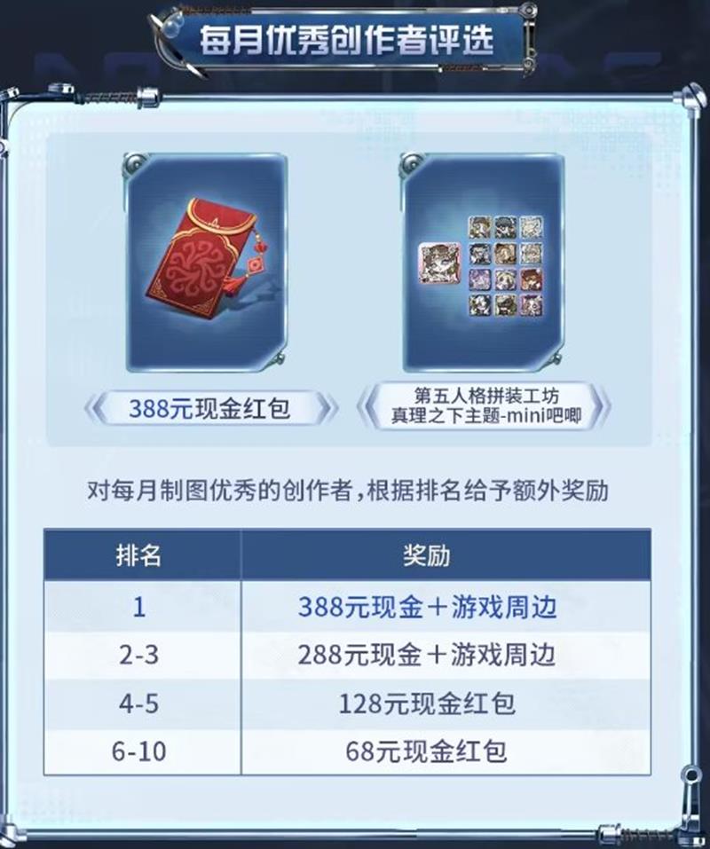 对于首月加入的实习创作者,其制作的地图玩法,评级后将给到额外的激励红包: